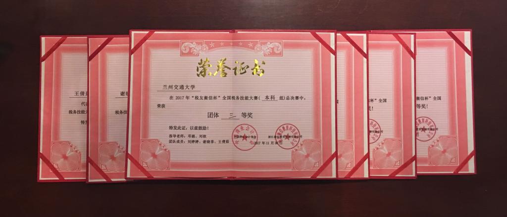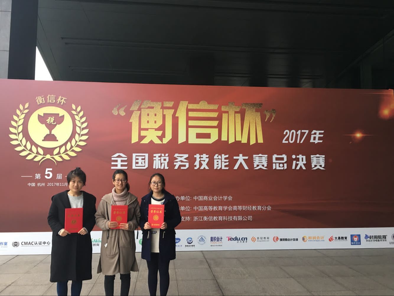 2017年11月30日,由中国商业会计学会主办、中国高等教育学会高等财经教育分会指导、浙江衡信教育科技有限公司大力支持的第五届“税友衡信杯”全国税务技能大赛(本科组) 总决赛在杭州落下帷幕。我校经济管理学院2014级会计学专业刘婷婷、谢晓菲和王倩茹三位同学在刘钦、邓娟老师的指导下,经过紧张激烈的角逐,表现优异,最终荣获本科组三等奖。